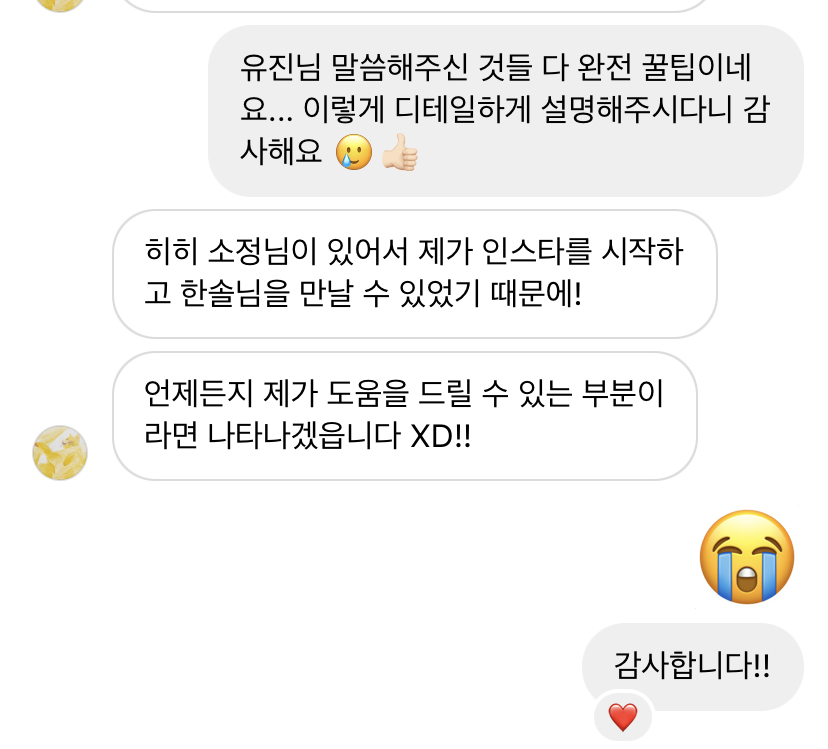 내가 올린 심리상담 게시물을 보고는 경험담이 담긴 꿀팁과 노래 추천까지 해주신 유진님. 감동 받아서 마음이 따땃해졌다.. ♨️
